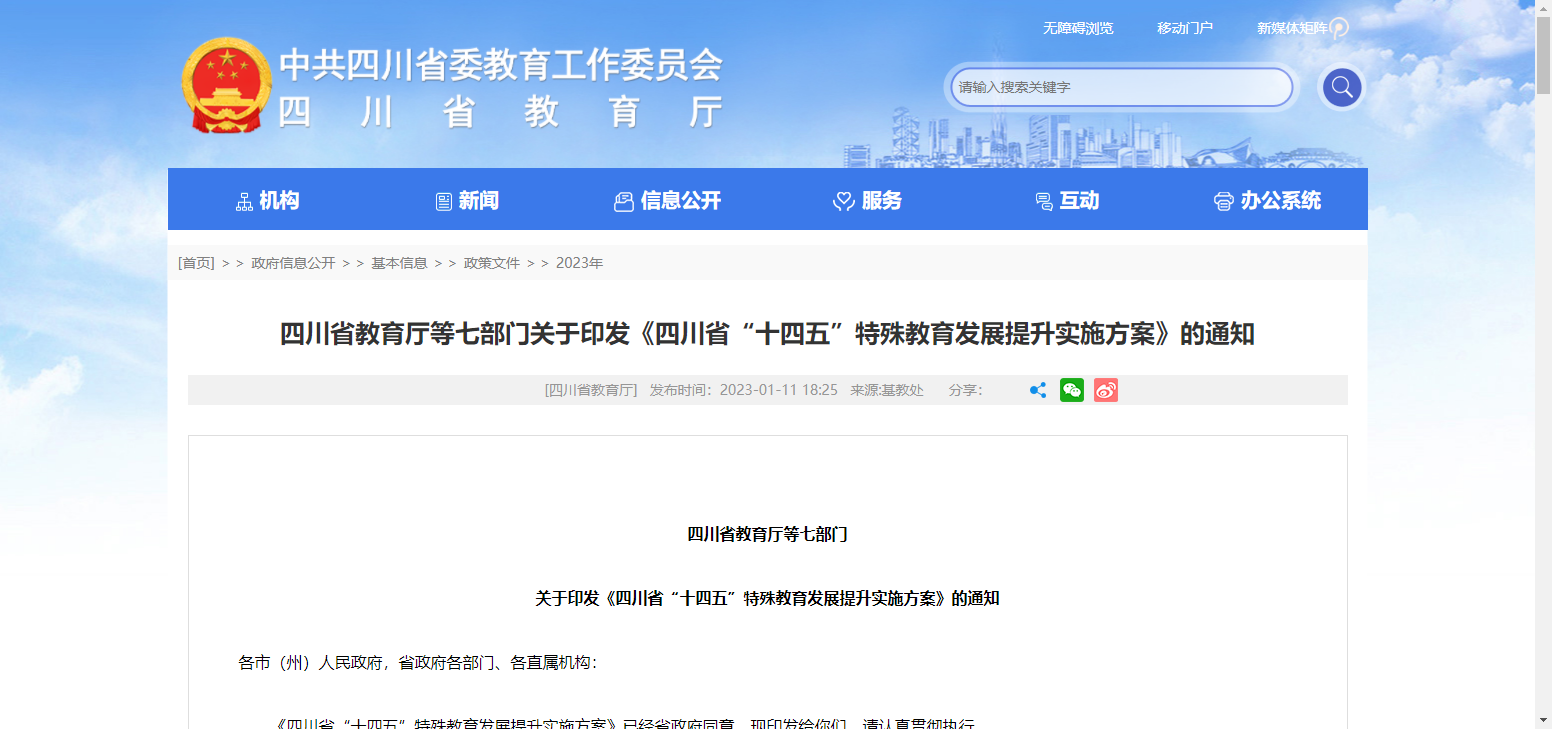 七部門關于印發(fā)《四川省“十四五”特殊教育發(fā)展提升實施方案》的通知