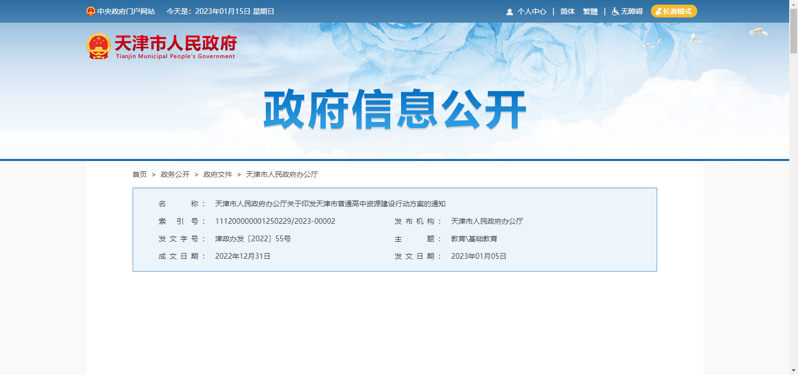 《天津市普通高中資源建設行動方案》發(fā)布